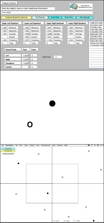 Visual Field Attention This program allows the user to examine visual neglect and sustained attention to visual stimuli. This program presents simple visual stimuli in random locations within the visual fields. The subject then presses the mouse button when a stimulus appears. The program records error rates and response times. The output includes average response times for each quadrant of the visual fields and the central and peripheral parts of the fields. The program also computes minimum and maximum response times for each quadrant. Finally, the program produces a visually interesting plot of response times for each part of the fields in which a stimulus appeared. The program is useful for the clinical examination of visual neglect, as a class presentation tool and as a research instrument. You can specify where you want the stimuli to appear or let the program generate random locations. Computer mediation of the procedure and response time analysis allows for a much more sensitive measurement of visual neglect than any analog method in current clinical use. Price: $99